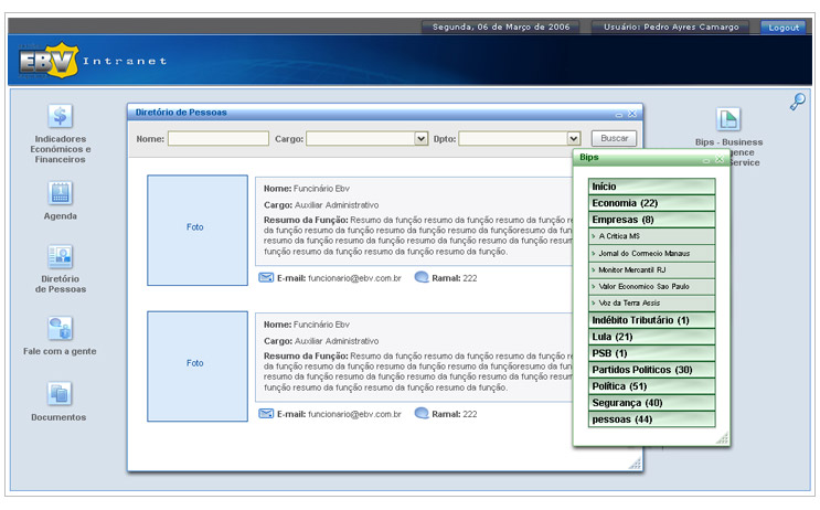 Interface de web site, intranet e aplicativos para empresa de segurança privada.