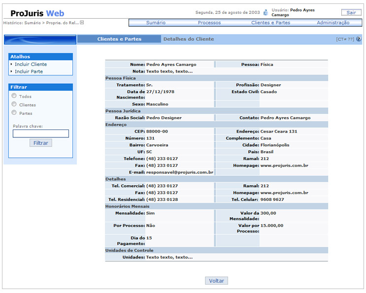Desenvolvimento de Interface para versão web do software de gerenciamento de processos jurídico.