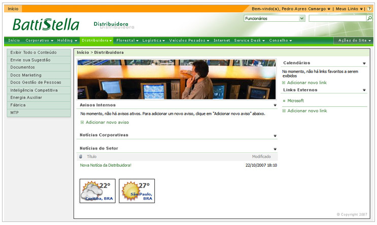 Intranet desenvolvida com Microsoft Sharepoint Portal Server.