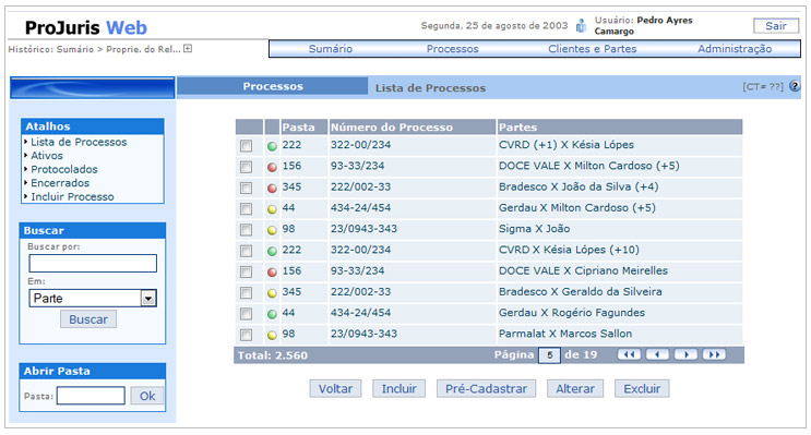 Desenvolvimento de Interface para versão web do software de gerenciamento de processos jurídico.