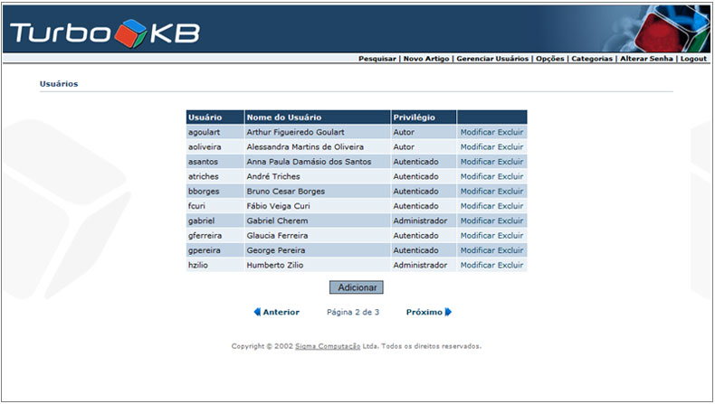 Marca e interface para aplicativo web de gestão de conhecimento.